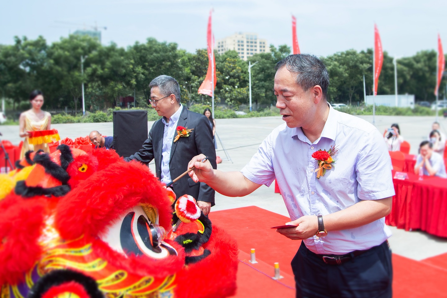 ? ? ? ?致辭結(jié)束后,東西湖區(qū)徐貽功常委與寶新創(chuàng)集團(tuán)王福華董事長為金獅“點(diǎn)睛”,被“點(diǎn)睛”后的吉祥雙獅舞動(dòng)全場(chǎng)。王福華董事長攜東西湖區(qū)徐貽功常委、區(qū)產(chǎn)業(yè)辦李五一主任,區(qū)招商局代立春局長、寶新創(chuàng)武漢工廠高級(jí)總監(jiān)吳兵權(quán)先生、寶新創(chuàng)上海研發(fā)中心總監(jiān)闞承義先生一起上臺(tái)進(jìn)行了開業(yè)剪彩以及工廠LOGO揭牌儀式,將活動(dòng)帶入高潮。隨著陣陣禮炮響徹云霄,武漢寶新創(chuàng)科技有限公司開業(yè)揭牌慶典落成。